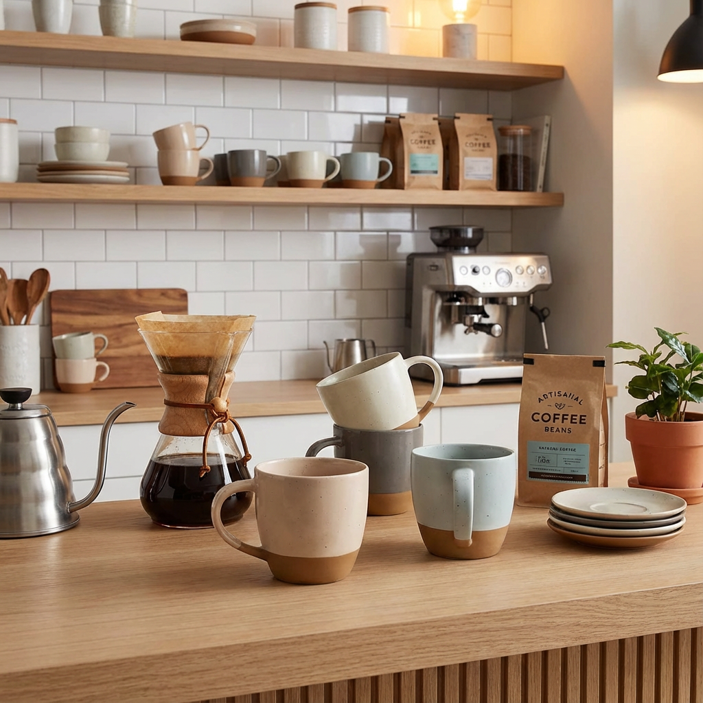 You can start with what you use most. This usually means a coffee maker or espresso machine, a grinder if you use whole beans, and basic tools like a scoop or frother. Keeping it simple helps maintain a clean, modern look.