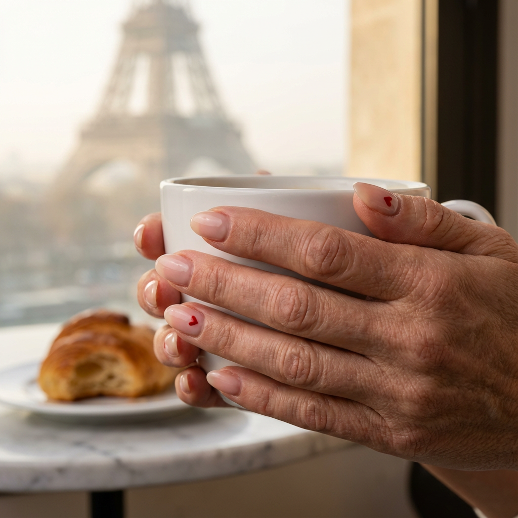 Soft, clean, and romantic in the most effortless way. It’s basically “French girl Valentine” — minimal nails with tiny hearts that still feel special.