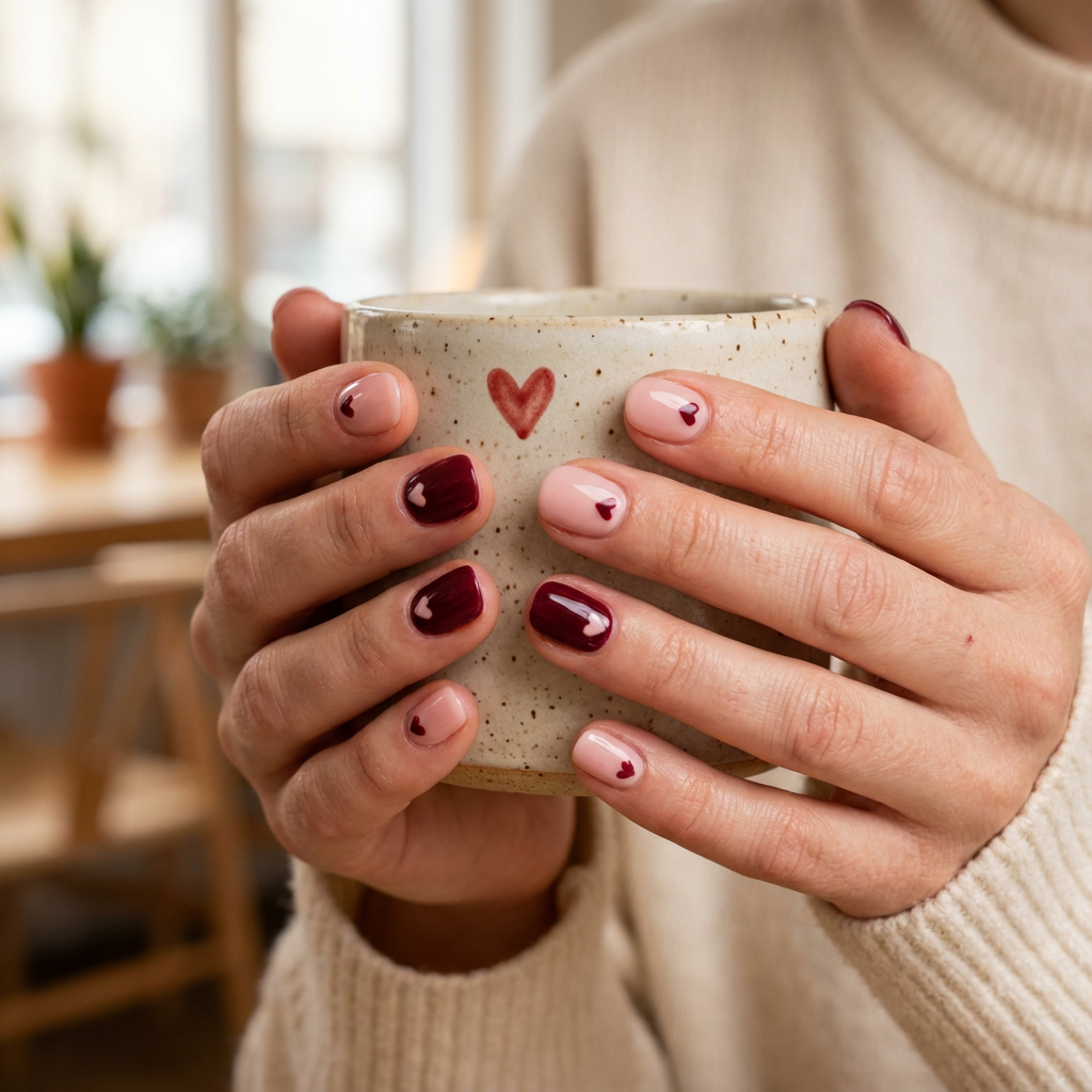 - On wine nails: add a tiny blush heart (center or near cuticle).