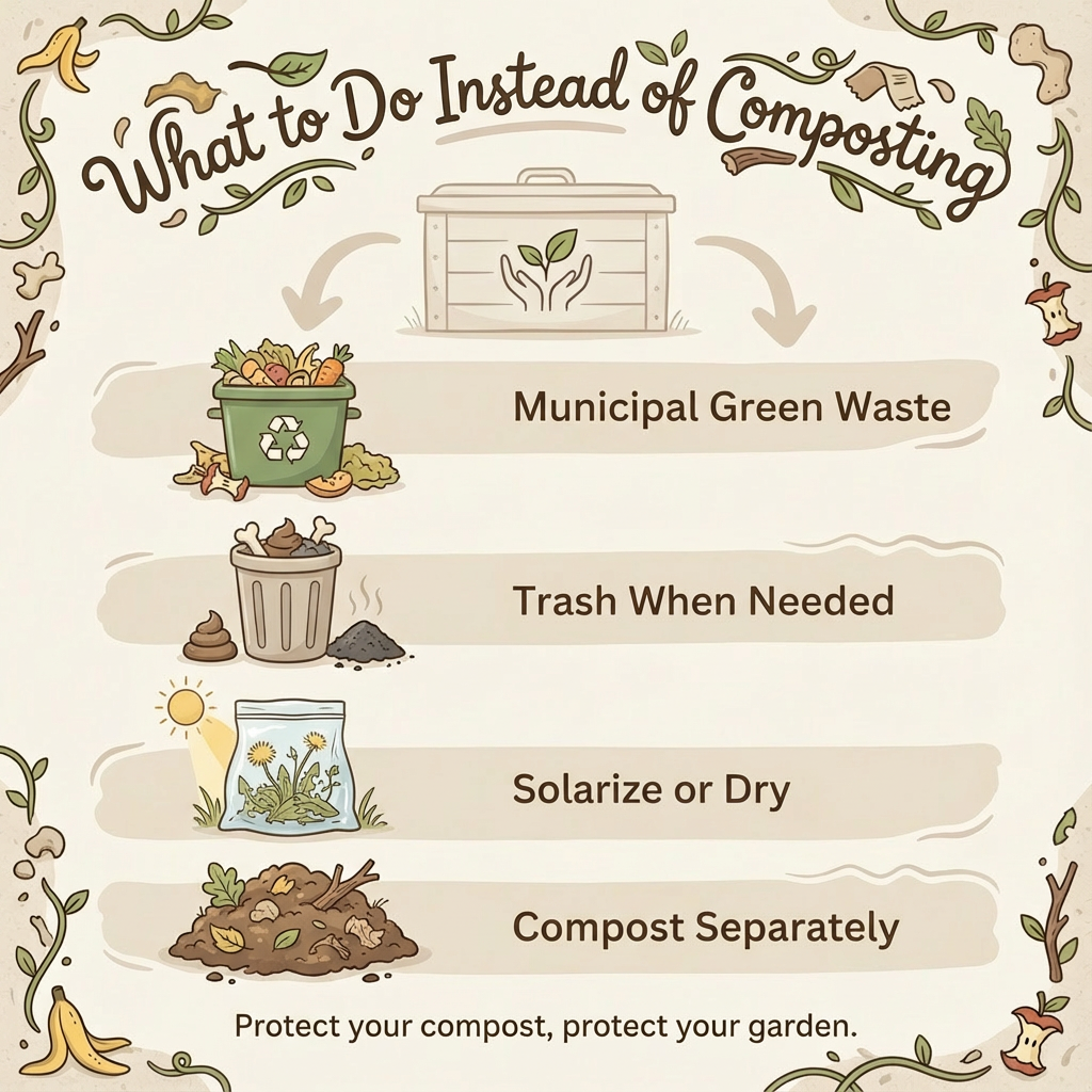 | Pesticide-Treated Plants or Wood | Chemical residues survive composting. | Can harm plants for multiple seasons. | Dispose through municipal programs when allowed. |
